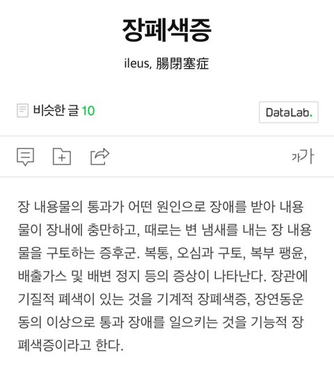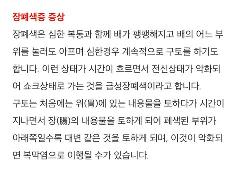 참고로 장폐색증이 어떤 병이라면 위의 증상을 가진 이런 병인데