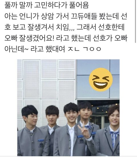 아 진짜 나 그 오빠아닌데~이 글 보고 죤나 치였음 개발려 아 연하의 매력 나 진짜 연하 관심 없었거든 ? 근데 유선호보고 진짜 매력을 알았다 걍 유선호라서 설레는 ㄴ건가 아니 내가 더 나이 많은데 서노가 더 키크고 아 뭔가 그런 것 부터가 벌써 설레 레알 구라 안치고 뒤질 것 같아 ㅇㅇ