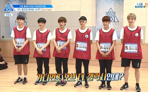 당시 기준 24위였던 박우진 연습생은초상위권인 1위, 2위, 4위, 5위, 6위가 포진된 겟어글리조에 마지막으로 들어가게 됨
