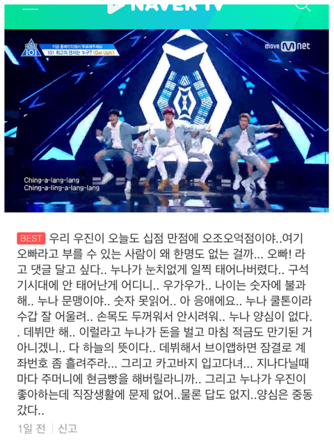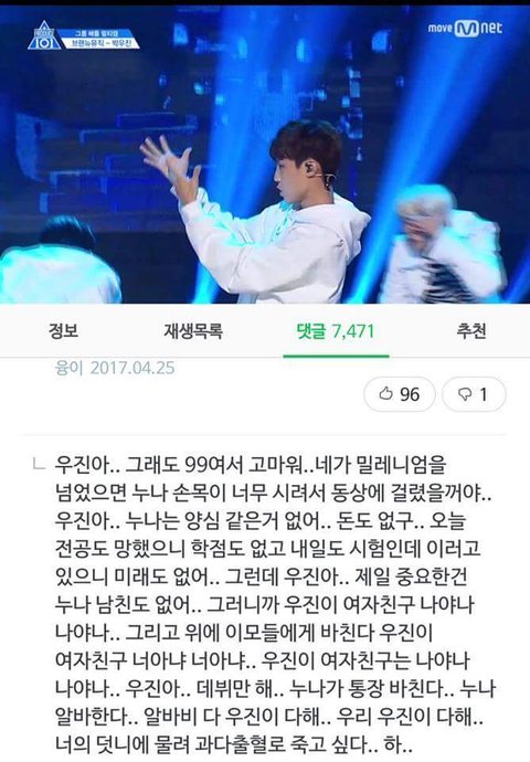 댓글들 보니까 우진이 은근 누나팬들이 많은듯