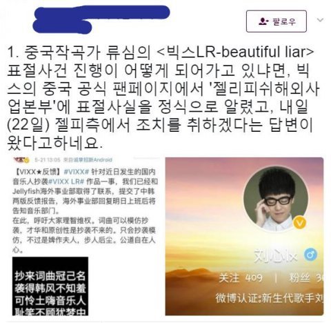 그중에서도 라비의 곡인 'beauilful liar' 라는 곡을 중국가수가 표절함 (표절 논란인 곡을 들어보면 원곡 라비의 노래와 매우 흡사함)