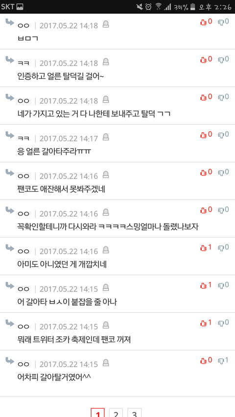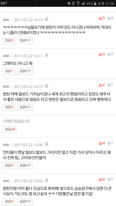 대댓 23개길래 눌렀는데 내용이 살벌해서