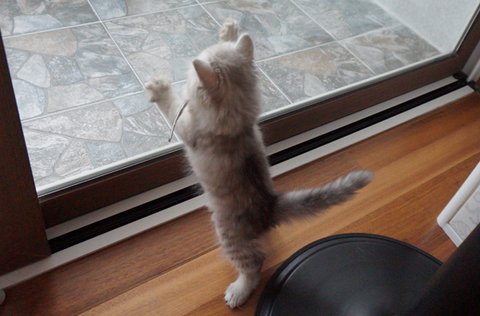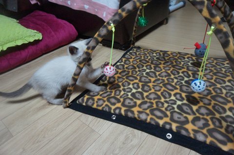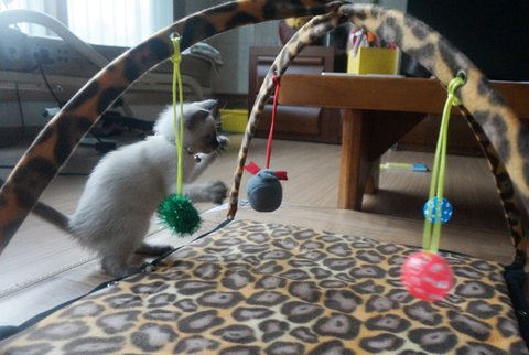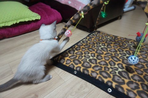 고양이 모빌 안밖에서 사방 팔방 뛰어다니고, 매달린 인형 물고빨고 열심히 놀던 호두.