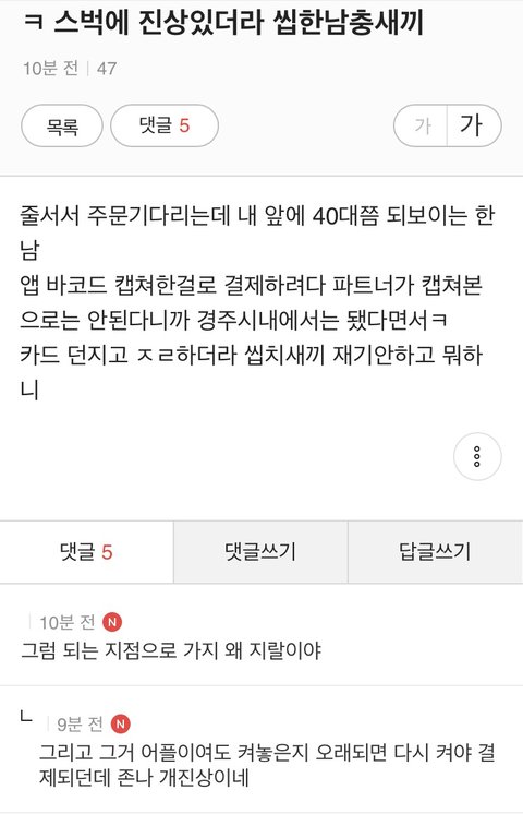 오늘 스벅에 개진상있더라ㅉ