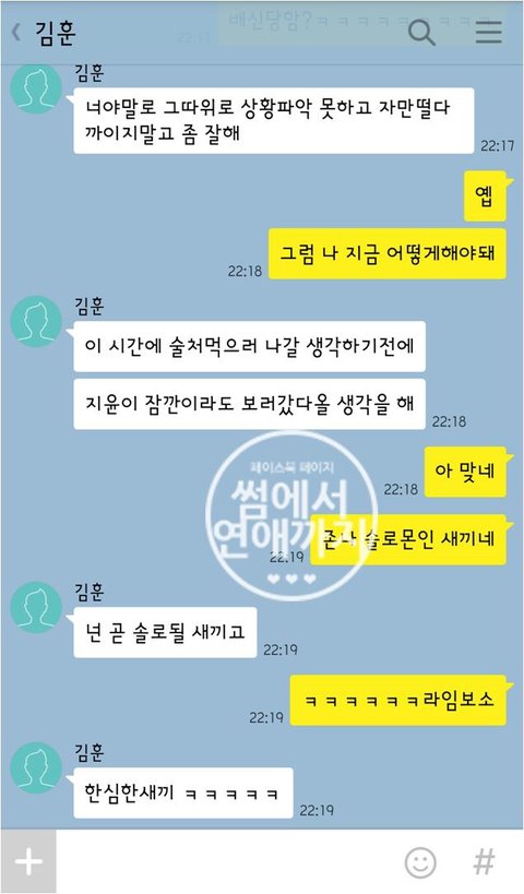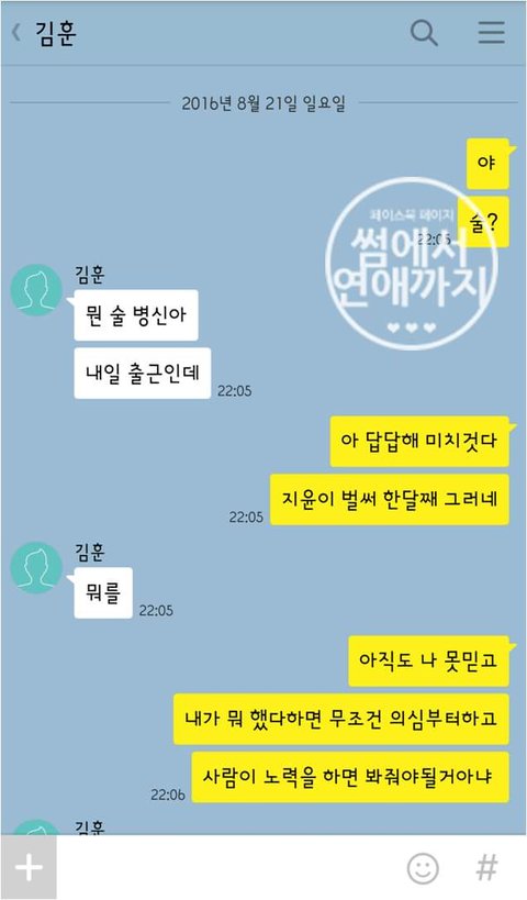시바 눈물이... 헤어질때도 안나왔던 눈물이 생판 모르는 남자가 나를 다독여주네 그저그런새끼였을뿐이라고 저 카톡에서 나한테 말해주는것 같네...그런 심정을 못 헤아리고 지잘났다고 설치던 새끼라고...그러니 잊으라고... 아 __ 눈물 어쩔