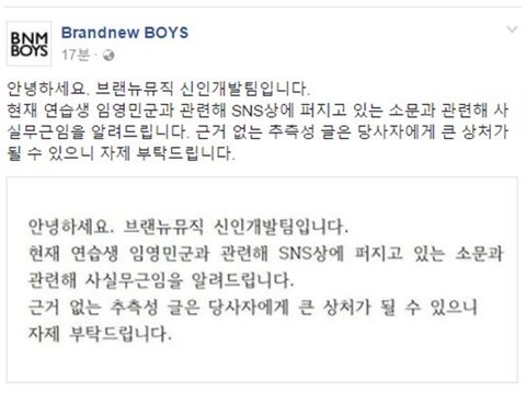브랜뉴에선 루머라고 바로 피드백했고
