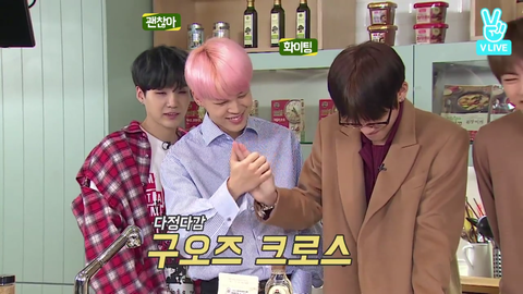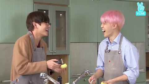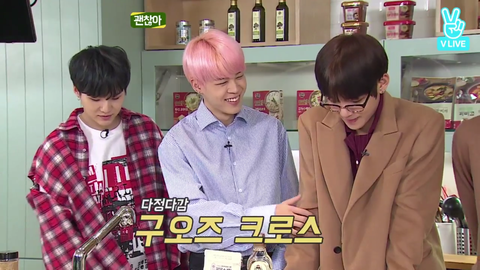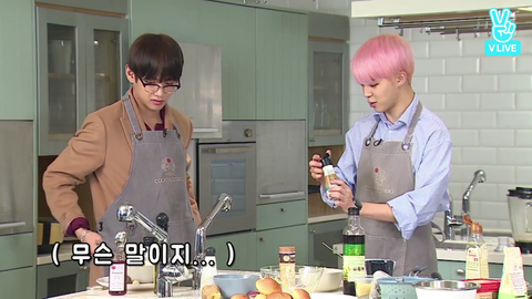 태형이 요리 못한다고 막 그르니까 찜니가 괜찮아 해주고