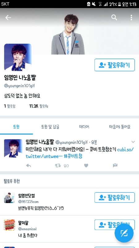 와..만팔 넘던 임영민 움짤계 계정지움..