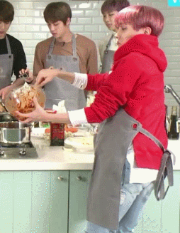 앞치마까지 하고있는데 튈까봐 몸 쭉뺀 호비