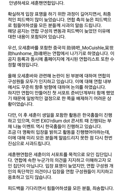 세훈바 세훈팬연합 탈퇴함?