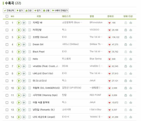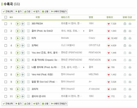 컨셉곡 작곡가 별로 노래 정리 한거임