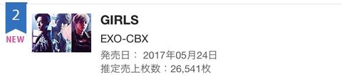 첸백시 GIRLS 오리콘 2위로 데뷔!!