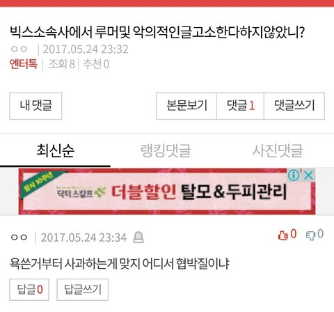 빅스 악성관련 물었더니 왜 지가뜨끔했는지 이유좀