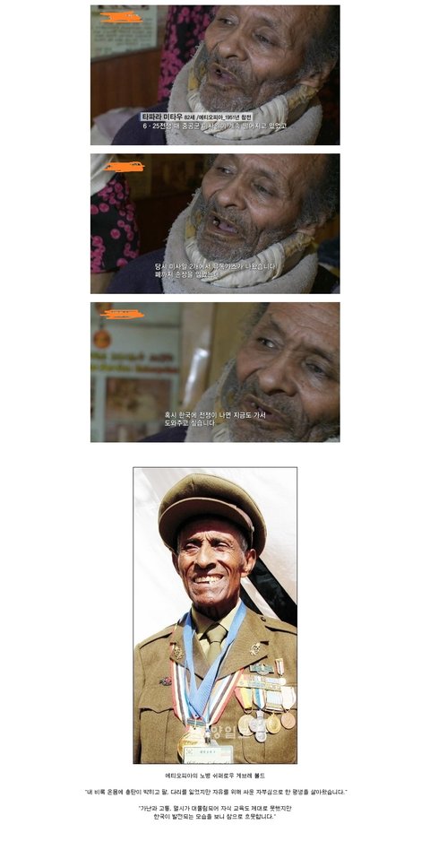 이디오피아는 1974년 공산주의 쿠테타가 일어나 하일레 셀라시에 1세가 살해되고 맹기스투가 대통령이 되어 한국전쟁에 참전한 군인들을 찿아내 동지인 북한&중공군인들을 죽였다는 이유로 학대한 역사가 있다. 이분도 거기에 말려들어 반동으로 몰려 모진 고초를 겪었다고...