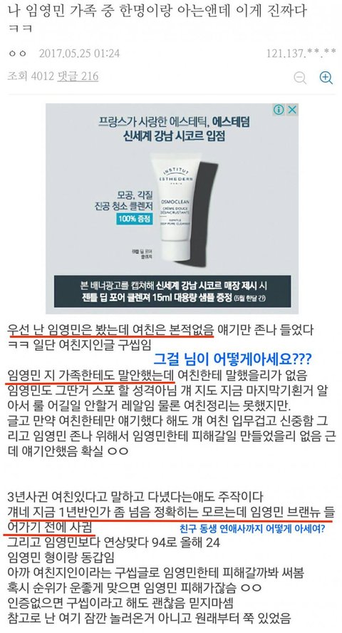 프갤에 임영민 지인으로 추정되는 누군가가 이글 올림.