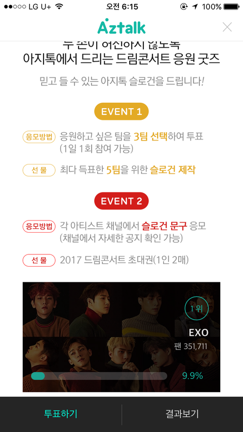 아쥐톡 가자 2위랑 차이 1퍼센트도 안 난다 어서 투표해