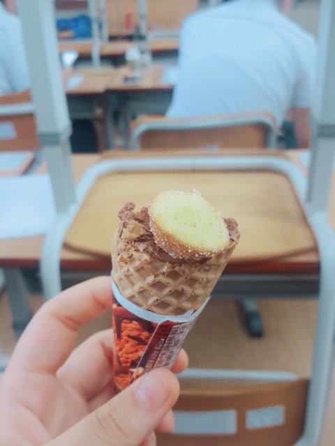 칭구가 아스크림 위에 빵 올려줌