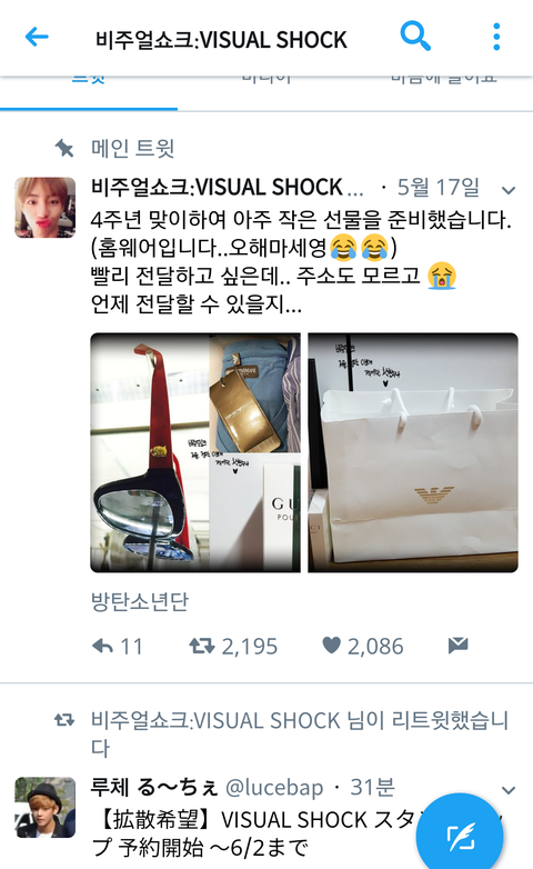 주소를 몰라서 선물을 못보낸다는데ㅋㅋㅋㅋㅋ그나저나 이 홈마 진짜 선물 많이,자주 넣는다..저번에 베톡에도있던홈도여기고 태형이 짹중에 그 무슨 머리에 쓰고하는 그것도 여기고 티비도 여기고ㅋㅋㅋ