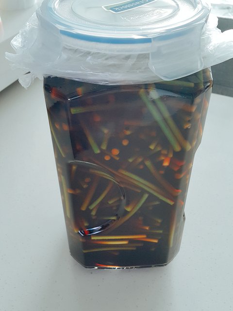 갓 먹으면 맛나고 폼나지만 이틀이상 지나면 콧물 비주얼이란 신랑의 멘트를 담은 김장아찌