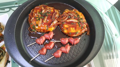 닭가슴살 질릴때 함박처럼~ 파슬리 없으니 우린 대파 썰어서 마무리 소스는 대충 집에있는 돈가스 소스도 넣고 케찹도 넣고 바비큐 소스도 넣었더니ㅎ 맛이 그럴사 했어유
