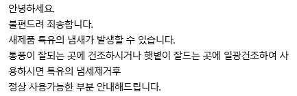 진짜 머리가 아프고 토할 정도의 냄새라서 거실이나 방에 두지도 못하고 일단 다용도실에 빼놓고