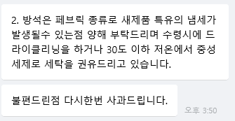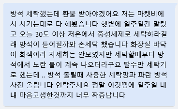 진짜 그 노랗고 역겨운 그것의 정체도 모르고 장갑도 없이 손 발로 비벼 빨아버렸어 ㅠㅠ 정말 진짜 이때부터 화가 나기 시작해서 다시 문의를 했어