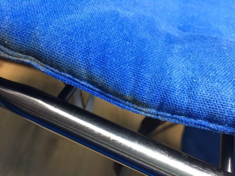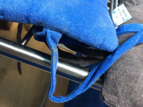 방석 끈이 거기 닿아있다가 물이 베어버려서 색깔이 달라진거야
