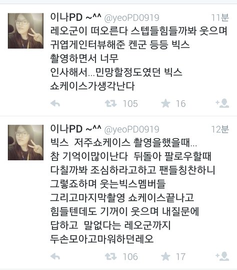 스탭들이 빅스에대해 너도나도 좋은글 써준거 왜 빼냐?^^