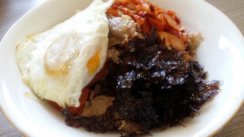 후라이는 반숙! 김치는 다지고! 김가루 위에 췜기름 팍팍! 환상 환장하는맛