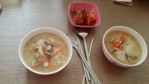 요건~ 언니랑 전날 술 엄청 마신 담날 시원~한 얼큰~한 국이땡거서.. 김치 콩나물국 ㅎㅎㅎ