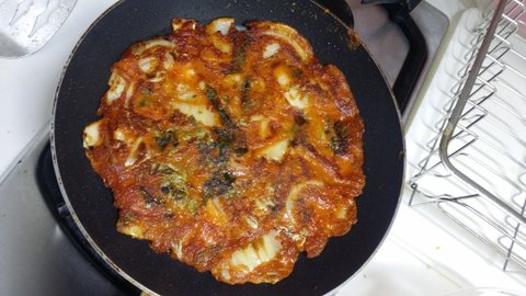 저는 어머니의 비법으로 김치전의 테두리는 바삭!