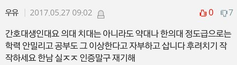 간호학과도 못들어가면서 후려치는애들 많네ㅋㅋㅋㅋㅋㅋㅋㅋㅋㅋ 간호학과애들 전공책을 펴봐라 그런소리가 나오는지