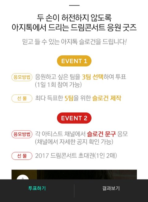 멜론 아지톡 들어가서 2017 드림 콘서트 이벤트 누르고 엔시티 127 엔시티 드림 투표하면 돼! 세 그룹 투표라서 다른 한 그룹은 원하는 대로 투표 가능...!!ㅎㅎ!