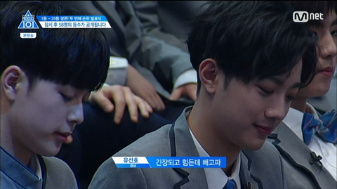 순위발표때 큐브라는 이름을 듣자마자 벌떡 일어났다가