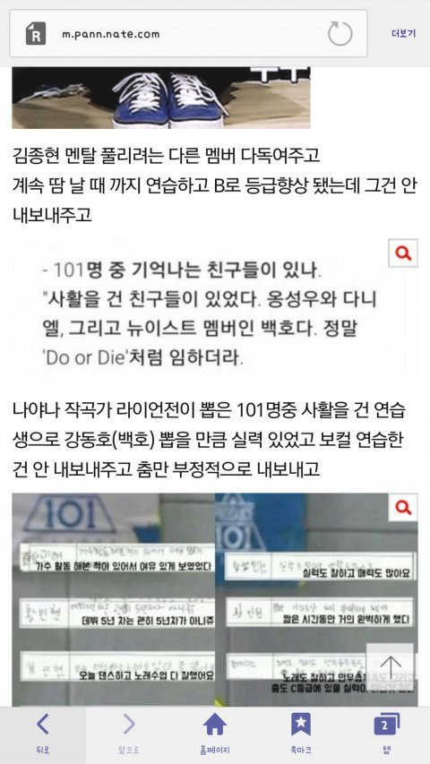 그리고 최민기는 도대체 한게 뭐있다고 순위가 높아??? 그자리는 우진영이나 다른 잘하는애들이 앉아도 차고 넘칠자린데.. 아오 얼굴좀 반반하다고 오래 가는거 진짜 별로다. 김종현도 카메라의식하고 착한 멘트 날리는거 나만 느끼나?? 그렇게 착한사람으로 보이짆 않던데.. 휴 강동호도 산적섹시 이미지 재밌긴한데 그래도 건방져보이고 별로 악착스런 의지가 없어보임. 어쨌든 뉴이스트 점점 상위권 장악하는거 진짜 별로임.