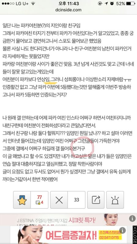 중간에 글 잘못쓴것좀 보셈 영민이도 그런 "오빠"한태 고마워한대ㅋㅋㅋㅋㅋㅋㅋㅋㅋㅋㅋㅋㅋ 여친 아닌척 실패했음ㅠㅠ