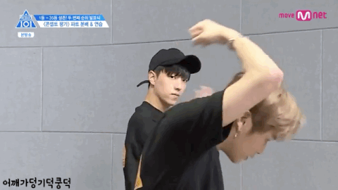 벌써 춤을 따서 팀원들한테 가르쳐주고 있어ㅋㅋㅋ하성운도 1일만에 배웠다는데..
