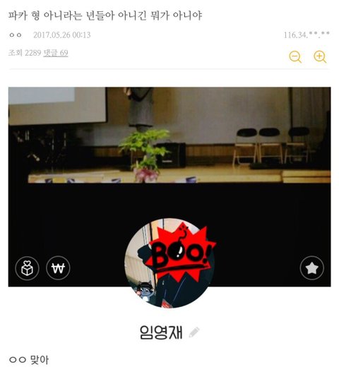 지금 페북에서 임영민 팬들이 녤로 방패막아서 아직도 까고있음 누가 페북유명한페이지에 임영민 부정행위랑 임영민팬들만행 좀 제보해줘 ㅠㅠ