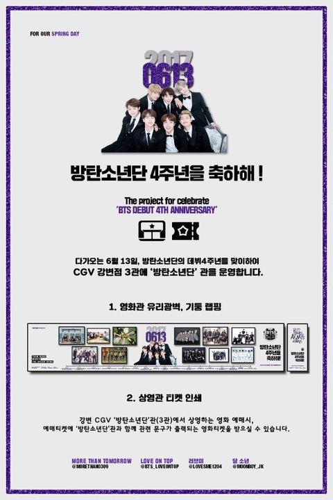 영화관에 방탄관이벤트한대 티켓도 애들관련 문구 프린트되서 나오는듯..