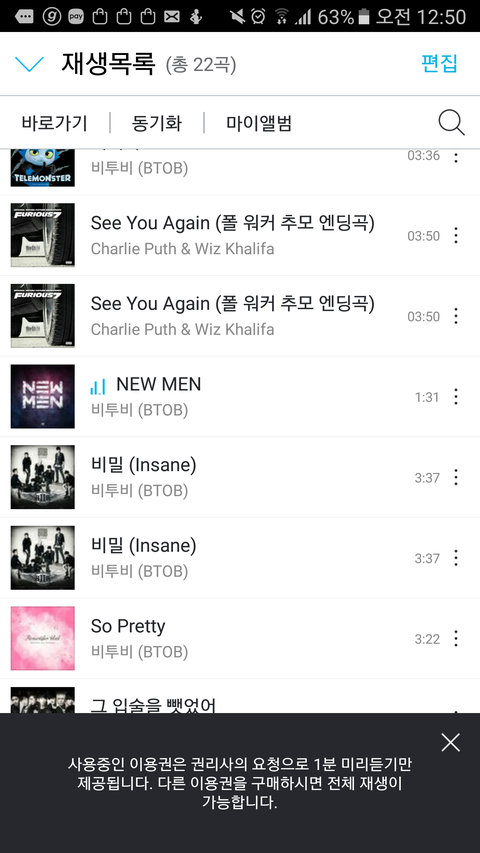 지니 쓰는 얘들아ㅠㅠ 나만 비투비 옛날노래 안틀어짐??