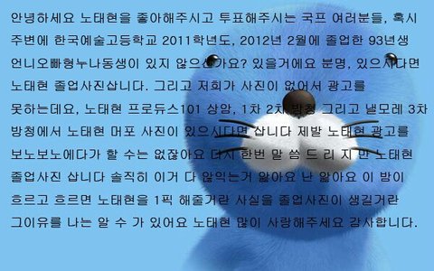 돈은다 모금됐는데 노태현 사진이 없어서 광고를 못하고 있음ㅋㅋㅋ