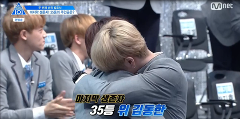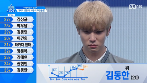 이번 순위 발표식 턱걸이로 35등해서 겨우 살아남은 김동한이야