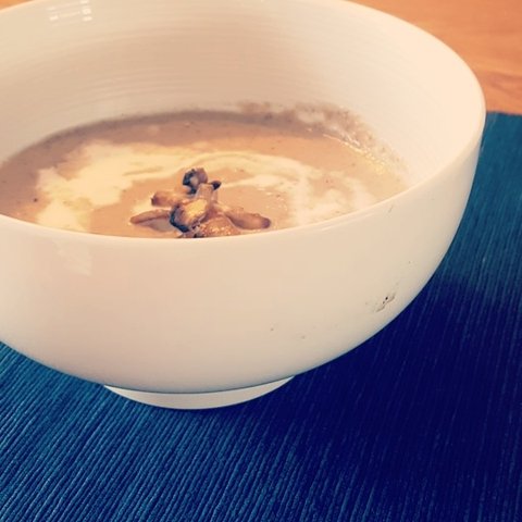 6. 물도 졸아들고 버섯 색깔로 만든 전분물 같이 보이면 이제 불을 꺼줘. 그리고 믹서기나 핸드블렌더 (도깨비방망이) 로 갈아주는데 나는 옛날 도깨비방망이를 할머니 집에서 빌려왔어! 사실 믹서기보단 핸드블렌더가 더 편해ㅜㅜ 믹서기는 용량이 정해져 있어서 나눠서 갈아야 하거든!