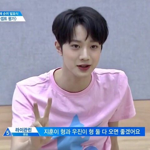 첫번째 순위발표식때....다른사람들은 다 앞에보고있는데 라이관린만 큰 화면으로 박지훈 얼굴 보고있음 ㅋㅋㅋㅋ