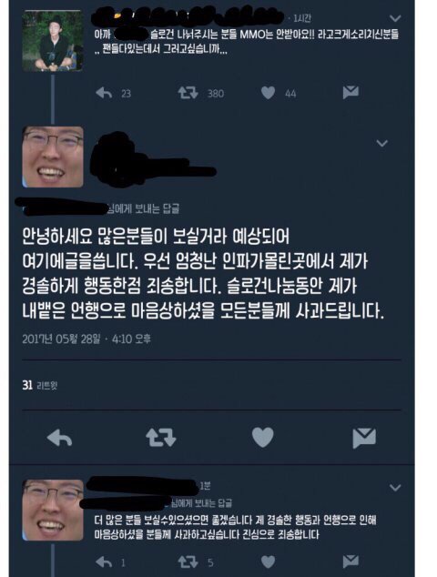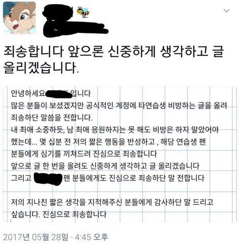일단 바로 사과문 올라왔는데..