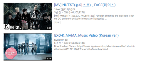 아이돌 뮤비 조회수 TOP 10 이라거나