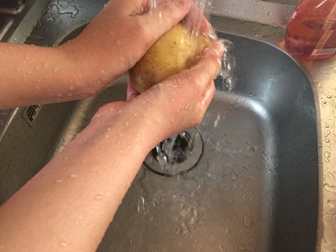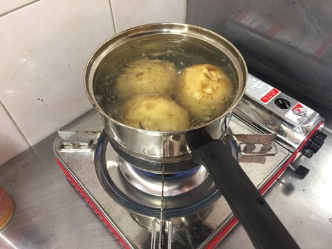 메쉬포테이토를 만들어 먹기 위해 감자를 씻은 후 삶았습니다