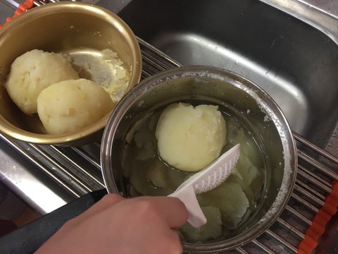 감자를 다른 냄비에 옮기고 바로 뒤처리!