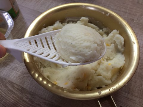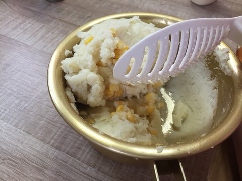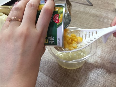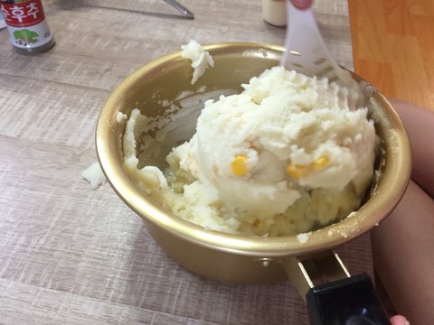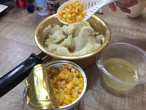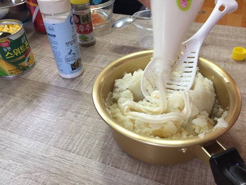 옥수수 물을 제거하고 으깬 감자 속으로 투입하여 잘 섞어주면 끝
