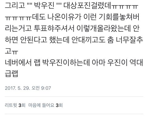 남는자리잇으면 우리우진이 한표부탁할게ㅜㅜㅜ